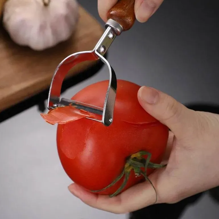 Die scharfe Klinge aus Aluminiumlegierung ermöglicht präzises Schälen und Abschaben von Obst und Gemüse und sorgt dafür, dass jede Aufgabe mit minimalem Kraftaufwand erledigt wird. Das ergonomische Design und die robuste Konstruktion sorgen für einen angenehmen Griff und machen ihn zu einem zuverlässigen Partner für alle Ihre Kochbedürfnisse.