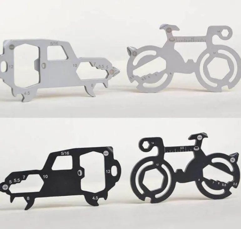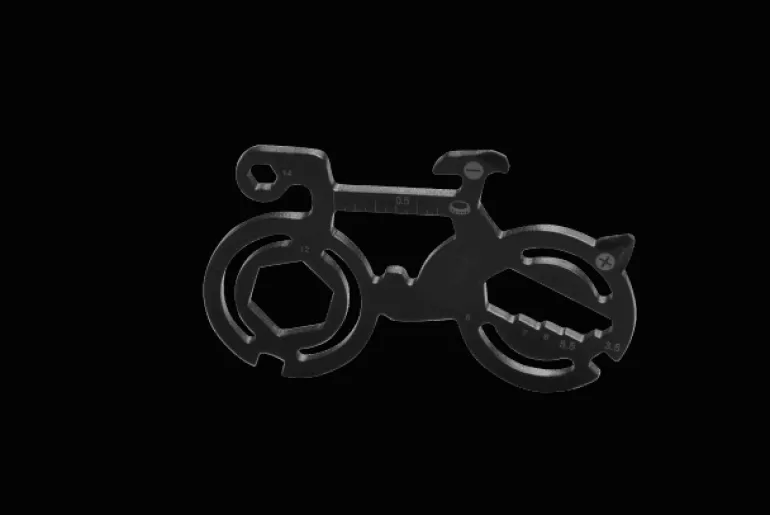Das Werkzeug hat eine schlanke, fahrradförmige Silhouette und wird einem detaillierten Sandstrahlprozess unterzogen, der seine Haltbarkeit und Härte verbessert. Mit einer Länge von ca. 68 mm (2,68 Zoll), einer Breite von 40 mm (1,57 Zoll) und einer Dicke von 2,5 mm (0,10 Zoll) ist es kompakt und dennoch robust genug, um verschiedenen praktischen Anforderungen gerecht zu werden.