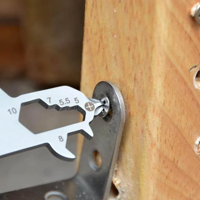 Dieses Schraubendreher-Set im Taschenformat ist ein multifunktionales Werkzeug für alltägliche Aufgaben. Es vereint Funktionalität und Komfort und bietet einen Flaschenöffner, einen Innensechskantschlüssel, einen Schraubenschlüssel, einen Schraubendreher und ein Lineal – alles in einem kompakten Design. Hergestellt aus robustem 420er Edelstahl, ist dieses leichte Multifunktionswerkzeug robust und beständig gegen Rost und Korrosion.