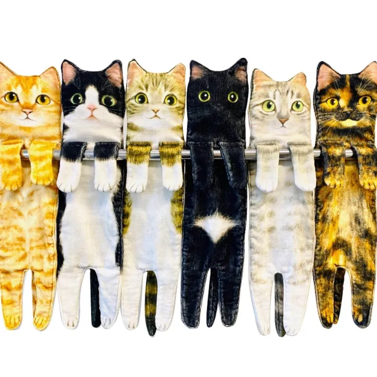 Erleben Sie den Komfort der schnelltrocknenden, weichen Katzenhandtücher für Tierliebhaber. Diese saugfähigen Handtücher trocknen schnell und sorgen dafür, dass Ihre Hände im Handumdrehen trocken sind, sodass Sie wieder mit Ihrem pelzigen Freund spielen können! Der weiche Stoff sorgt für ein sanftes Gefühl auf der Haut, während das charmante Katzendesign für ein verspieltes Element sorgt, das garantiert ein Lächeln auf Ihr Gesicht zaubert.