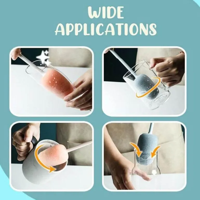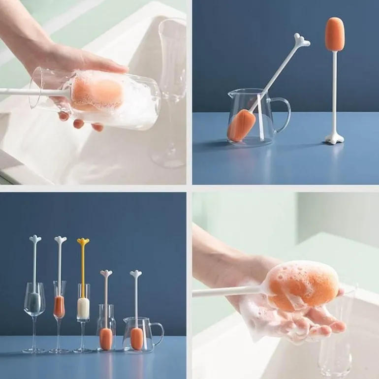 Entdecken Sie den Komfort unserer Schwammbürste mit langem Griff, die speziell für die vertikale Reinigung schwer erreichbarer Stellen verschiedener Behälter wie Weingläser, Krüge und Tassen entwickelt wurde. Dieses vielseitige Reinigungswerkzeug verfügt über einen um 360° drehbaren Griff, der müheloses Manövrieren ermöglicht und Ihnen ermöglicht, jeden Winkel Ihrer Flaschen problemlos zu erreichen. Der Griff ist mit schützendem Kunststoff beschichtet, der die Öffnung Ihrer Glaswaren vor Kratzern schützt und dazu beiträgt, dass Ihre Gegenstände sicher und unbeschädigt bleiben.