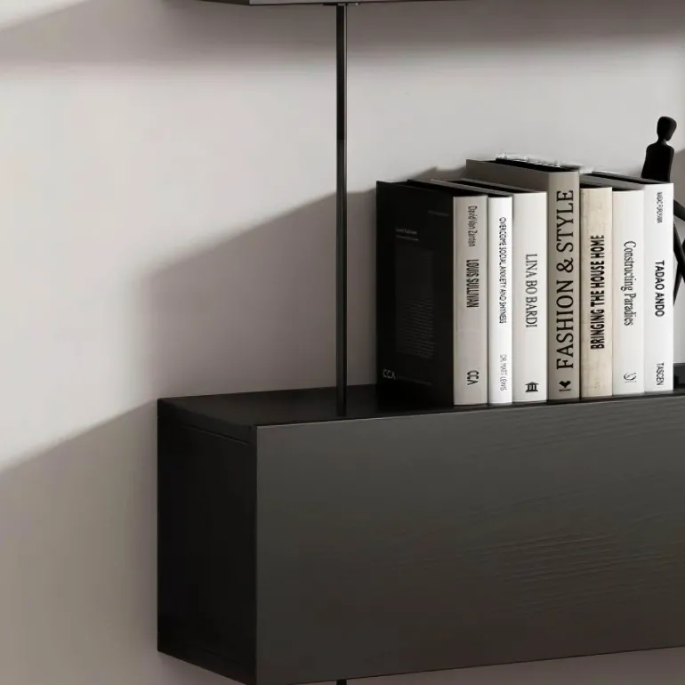 Die durchdachten, verstellbaren Regalböden ermöglichen eine einfache Höhenverstellung und bieten Platz für verschiedenste Gegenstände – von Büchern und Kunstwerken bis hin zu Dekorationsstücken. Dank dieser Flexibilität können Sie die Präsentation an Ihre wechselnden Aufbewahrungsbedürfnisse anpassen und so Ihren Raum übersichtlich und optisch ansprechend gestalten.