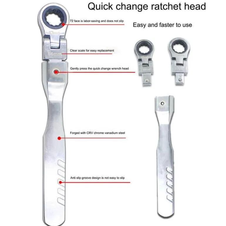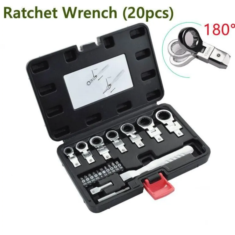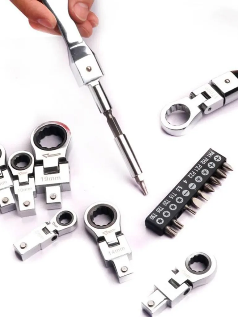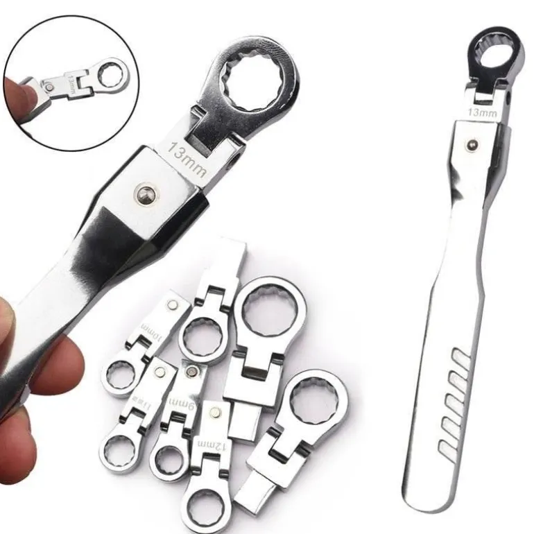 Entdecken Sie die praktische und effiziente Handhabung unseres Winkel-Ratschenmaulschlüssels. Er ist mit einer präzisen 72-Zahn-Ratsche ausgestattet, die schnelle Demontagearbeiten erleichtert. Dieser innovative Steckschlüsselsatz ermöglicht eine sanfte 180-Grad-Drehung, sodass der Kopf aus jedem Winkel problemlos auf Befestigungselemente zugreifen kann. Im Gegensatz zu Standardschlüsseln vereinfacht dieses Werkzeug das Anziehen von Schrauben in engen Räumen und gewährleistet eine durchgehende Verzahnung mit den Schrauben für maximale Effektivität.