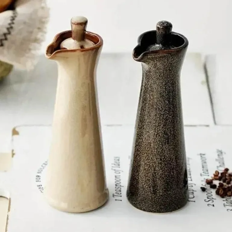 Veredeln Sie Ihr kulinarisches Erlebnis mit diesem handgefertigten Seifenspender aus Keramik – ideal zum Servieren von Sojasauce oder zum Beträufeln hochwertiger Öle. Mit seiner hohen, schlanken Silhouette besticht dieser Spender durch sein unverwechselbares Design mit einer eleganten, reaktiven Glasur und einem filigranen Muster aus winzigen, einzigartigen Flecken, die ihm seinen rustikalen Charme verleihen. Der glatte Ausguss ermöglicht präzises Ausgießen und sorgt für stilvolles Servieren Ihrer Gewürze. Ein passender Korkverschluss verleiht dem Stück Wärme und Charakter. Mit einem Fassungsvermögen von 100 ml verbindet dieses vielseitige Accessoire Funktionalität mit Ästhetik und ist somit eine wertvolle Ergänzung für jedes Zuhause.