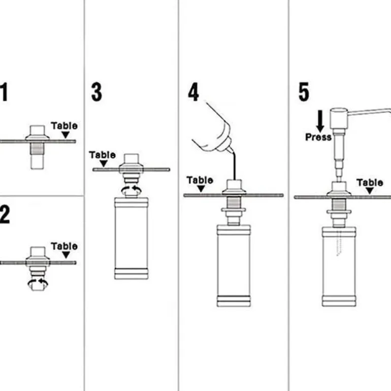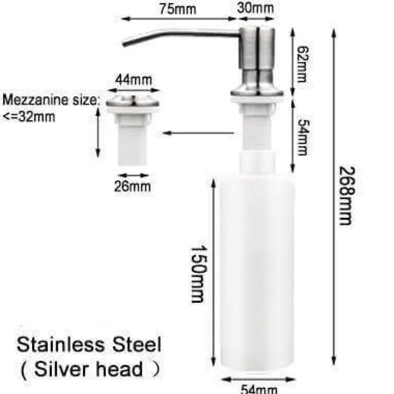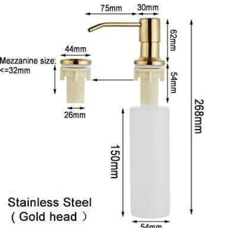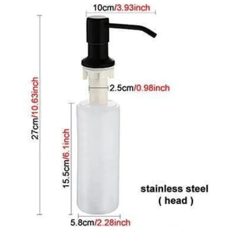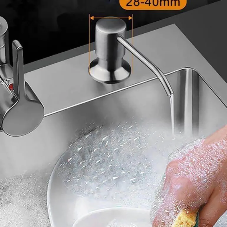 Der Seifenspender für die Spüle bietet bequemen Zugriff auf Spülmittel, Handwaschmittel und verschiedene Seifenlösungen. Die Installation dieser Seifenpumpe für die Arbeitsplatte ist unkompliziert und dauert nur wenige Minuten. Zum Nachfüllen entfernen Sie einfach den Spenderkopf und füllen Flüssigseife nach – Sie müssen nicht die gesamte Flasche abnehmen. Hergestellt aus robustem Edelstahl und hochwertigem ABS-Material ist dieser Spender langlebig und auslaufsicher.