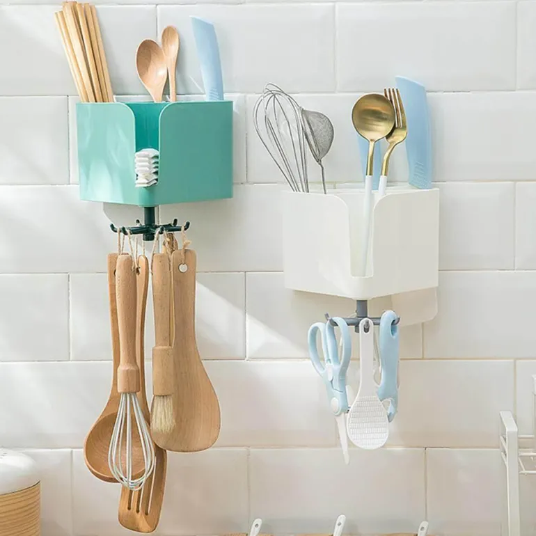 Das Gestell verfügt an der Unterseite über einen drehbaren Haken, der das mühelose Greifen aller Küchenutensilien ermöglicht und so für effizienteres Kochen sorgt. Eine lange Nut an der Vorderseite bietet Platz für Löffel mit unterschiedlichen Grifflängen und sorgt dafür, dass Ihre Utensilien geordnet und leicht zugänglich sind.
