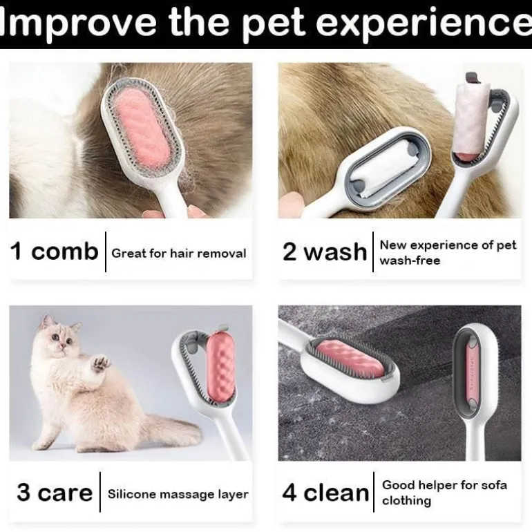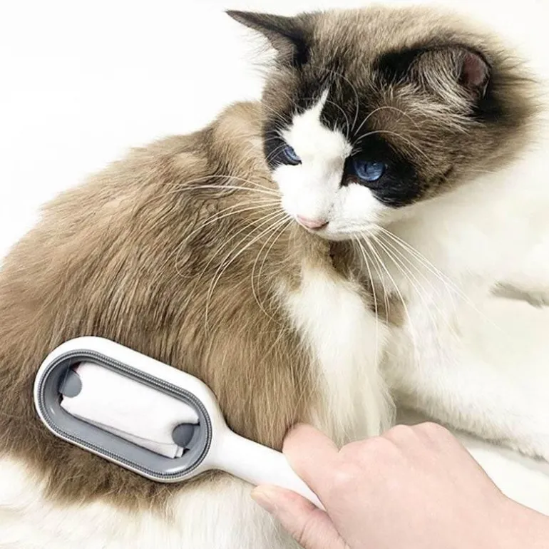 Mit seinen flexiblen Borsten, die in alle Richtungen bürsten, entfernt dieses Pflegewerkzeug mühelos Verfilzungen und entfernt lose Haare. Der gebogene Griff mit weichem Griff und rutschfester Unterseite sorgt für sicheren Halt und präzise Fellpflege. Diese Bürste entfernt sanft lose Haare, Schmutz und Hautschuppen und sorgt so für ein sauberes und gesundes Fell Ihres Haustieres.