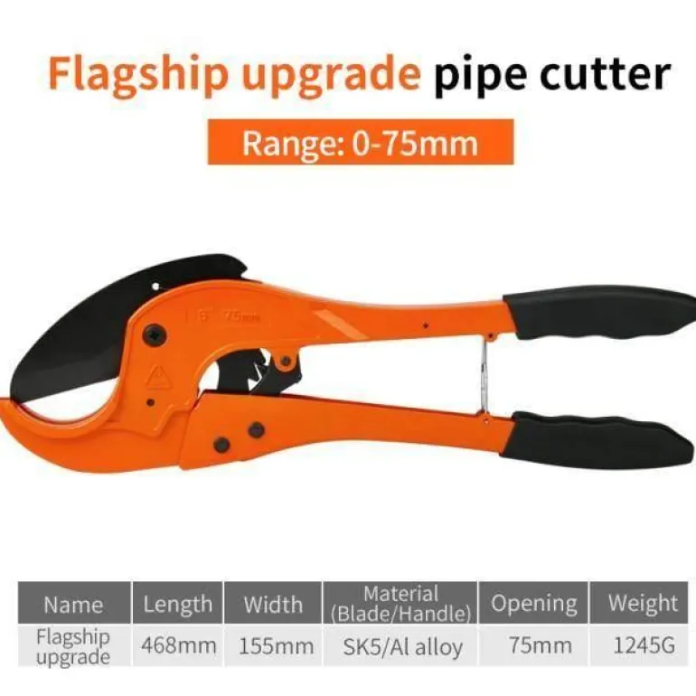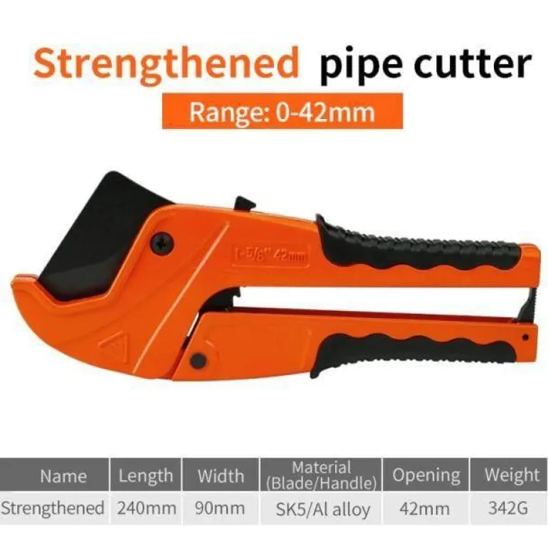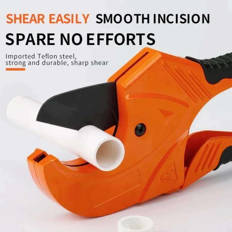 Dieses vielseitige Werkzeug eignet sich zum Schneiden einer Reihe von Materialien, darunter PVC-, CPVC-, PE-, PPR- und PEX-Rohre mit Durchmessern bis zu 42 mm (1-2/3 Zoll). Es kann auch Gummischläuche, Vinyl und mehrschichtige Rohre verarbeiten und ist somit eine unverzichtbare Ergänzung für den Werkzeugkasten eines jeden Klempners.