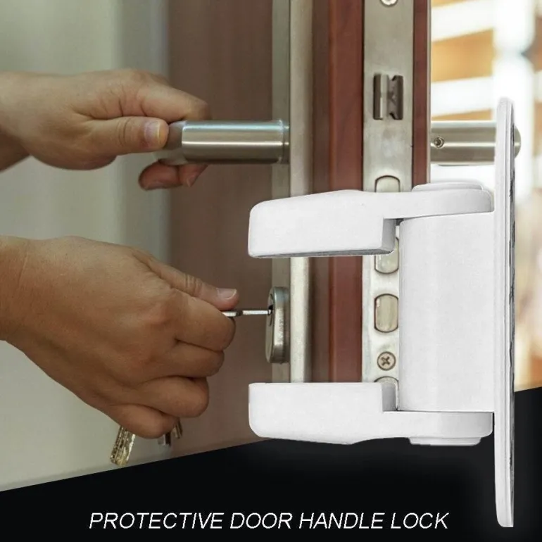 **Im Lieferumfang enthalten:** 1 x Sicherheits-Türgriffschloss für Kinder.