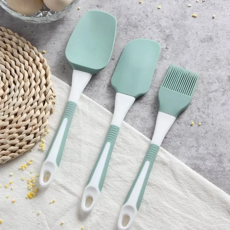 Entdecken Sie das Fresh Silicone Baking Tools Set, eine sorgfältig zusammengestellte Auswahl an Küchenutensilien, die Stil und Funktionalität vereinen. Diese langlebigen Utensilien aus hochwertigem, lebensmittelechtem Silikon verfügen über eine glatte, antihaftbeschichtete Oberfläche, die das Backen zum Vergnügen macht und Ihre köstlichen Kreationen mühelos löst. Die Reinigung ist schnell und einfach, sodass Sie mehr Zeit für den Genuss Ihrer Leckereien haben. Jedes Utensil ist mit einem praktischen Aufhängeloch ausgestattet, das für eine einfache Organisation sorgt und für Ordnung in Ihrer Küche sorgt. Dieses vielseitige Set ist ideal für Hobbybäcker, die mühelos köstliche Süßigkeiten zaubern möchten.