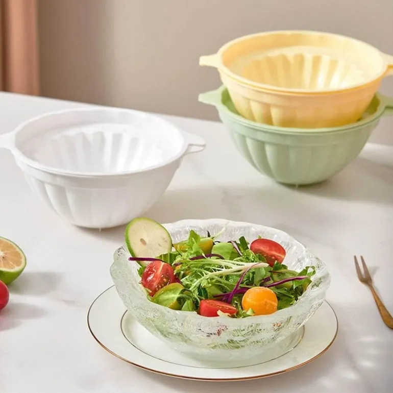 Verschönern Sie Ihre Partys und Zusammenkünfte mit der innovativen Eisschalenform. Mit diesem benutzerfreundlichen Werkzeug können Sie eine beeindruckende Eisschale herstellen, die eine dekorative und funktionale Möglichkeit bietet, kalte Getränke, Desserts oder Vorspeisen zu servieren und gleichzeitig angenehme Gespräche unter Ihren Gästen zu fördern.