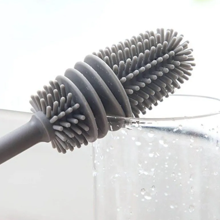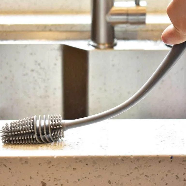 Der weiche Bürstenkopf sorgt für kratzfreie Oberflächen und ermöglicht ein sanftes und dennoch effektives Reinigungserlebnis. Der verlängerte Griff ist mit allen Becher- und Flaschenarten kompatibel und entfernt selbst hartnäckige Bodenflecken effektiv. Der einzigartig geformte, bogenförmige Bürstenkopf ermöglicht ein bequemes Manövrieren an den Konturen verschiedener Becherformen und steigert so Ihre Reinigungseffizienz.