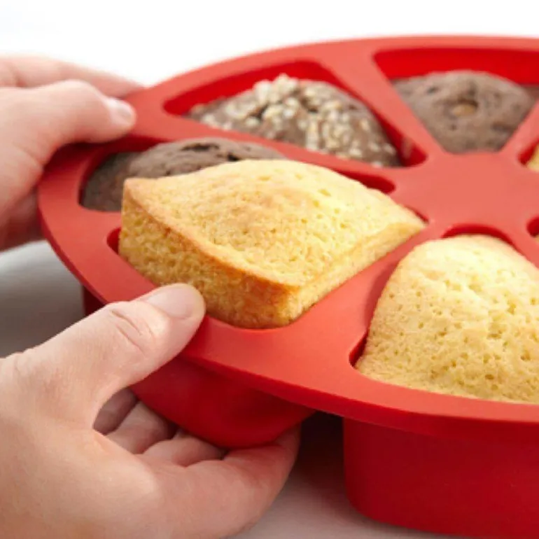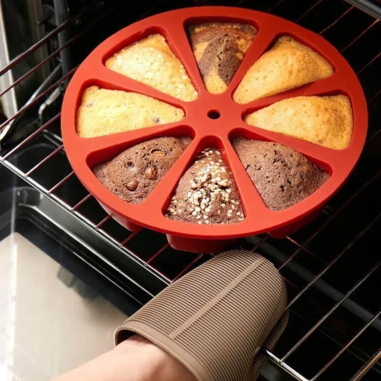 Kreieren Sie köstliche Leckereien mit der Silikon-Mehrfach-Kuchenform, die für vielseitiges Backen konzipiert ist. Mit dieser innovativen Form können Sie verschiedene Kuchen- oder Cupcake-Sorten gleichzeitig backen, da die dreieckigen Mulden für eine einfache Handhabung getrennt sind.