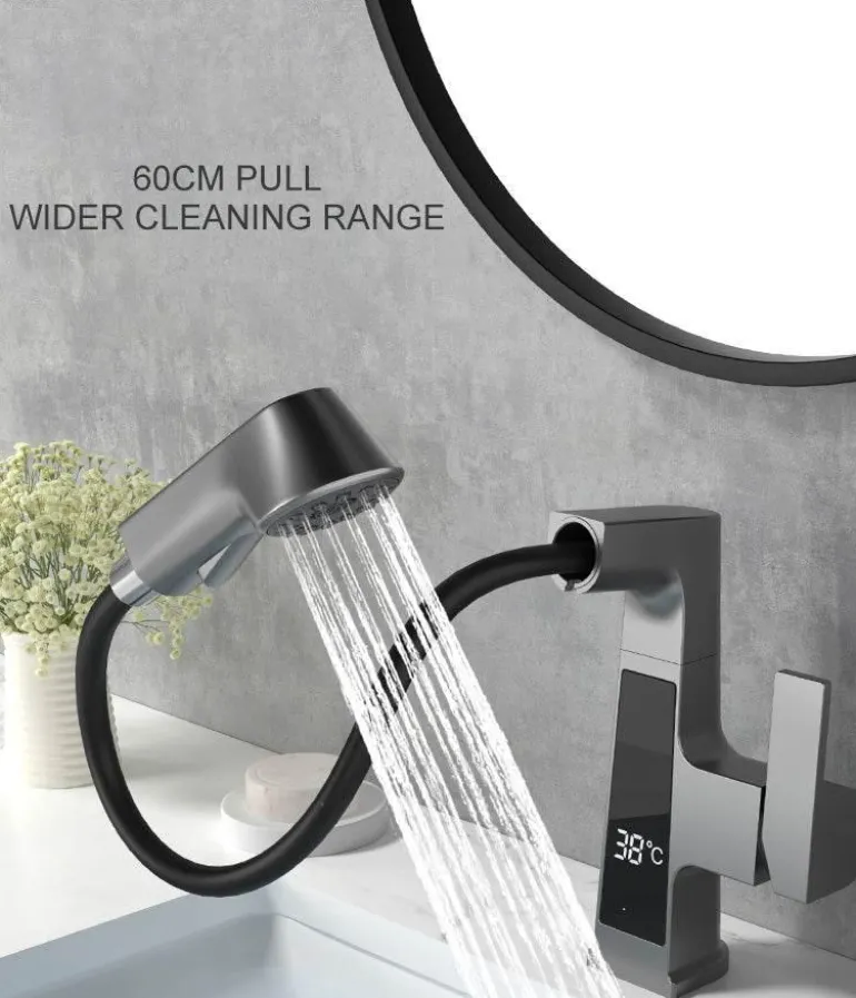 Transform your bathroom experience with this intelligent faucet, meticulously crafted to harmonize functionality and aesthetics. The integrated temperature display allows you to effortlessly maintain your preferred water temperature, enhancing your daily routines. Its modern and sleek design serves not only a functional purpose but also contributes a touch of sophistication to any space.