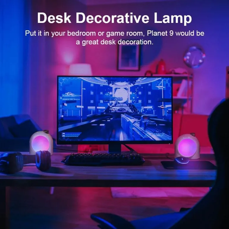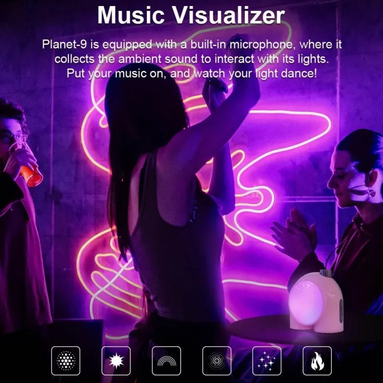 Featuring a built-in microphone, the lamp functions as a music visualizer, responding to ambient sounds and creating a mesmerizing display of light that moves with the beat of your favorite music. Simply play your tunes and enjoy the dynamic illumination that enhances your space.