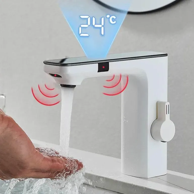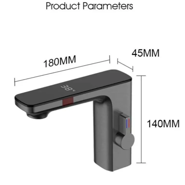Wir präsentieren den intelligenten Sensorhahn mit energieeffizienter Digitalanzeige – die perfekte Ergänzung für Ihre moderne Küche oder Ihr Badezimmer. Dieser innovative Hahn besticht durch sein schlankes, modernes Design und eine Digitalanzeige, die die Wassertemperatur in Echtzeit anzeigt und so bei jeder Benutzung für Komfort und Sicherheit sorgt. Dank der berührungslosen Freisprechfunktion können Sie diesen Sensorhahn bedienen, ohne die Griffe zu berühren. Das fördert die Hygiene und spart Wasser dank seines effizienten Designs.