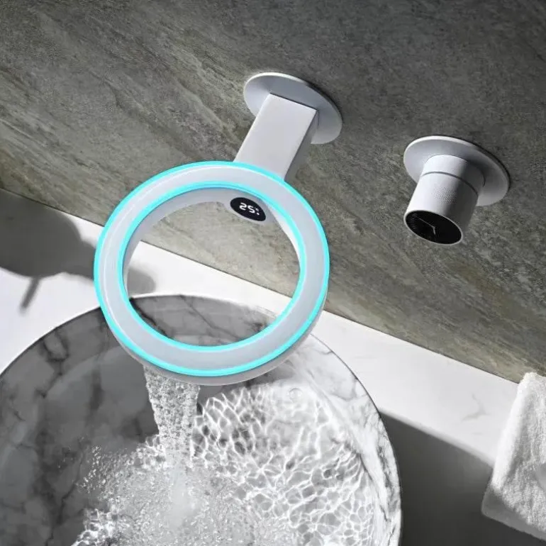 Verwandeln Sie Ihr Badezimmer mit dem ringförmigen LED Smart Digital Wasserhahn, der Spitzentechnologie mit elegantem Design harmonisch verbindet. Dieser raffinierte Wasserhahn verfügt über ein elegantes, ringförmiges LED-Licht, das nicht nur Ihr Badezimmerdekor aufwertet, sondern auch visuelle Hinweise zur Wassertemperatur liefert und so die Sicherheit und das Bewusstsein aller Nutzer erhöht. Dank des integrierten intelligenten Digitaldisplays genießen Sie eine präzise Temperaturregelung. Ein unverzichtbares Accessoire für alle, die Komfort ohne Stil schätzen.