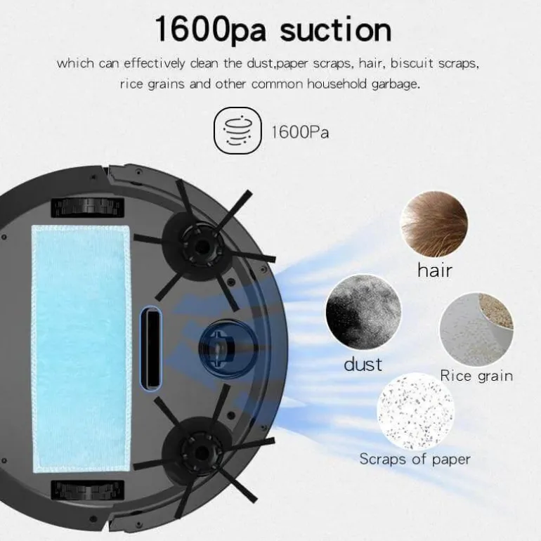 Der Roboterstaubsauger bietet zahlreiche Funktionen, darunter Ein-Knopf-Start, Kehren, Wischen, Staubsaugen, USB-Ladefunktion, universelle Fahrfunktionen, automatische Hindernisvermeidung und leisen Betrieb. Er beseitigt effektiv Schmutz, Haare und Ablagerungen, reduziert die Umweltverschmutzung und sorgt für mehr Sauberkeit.
