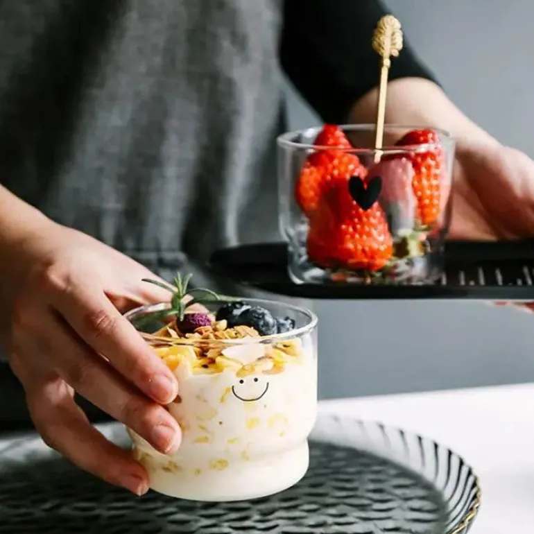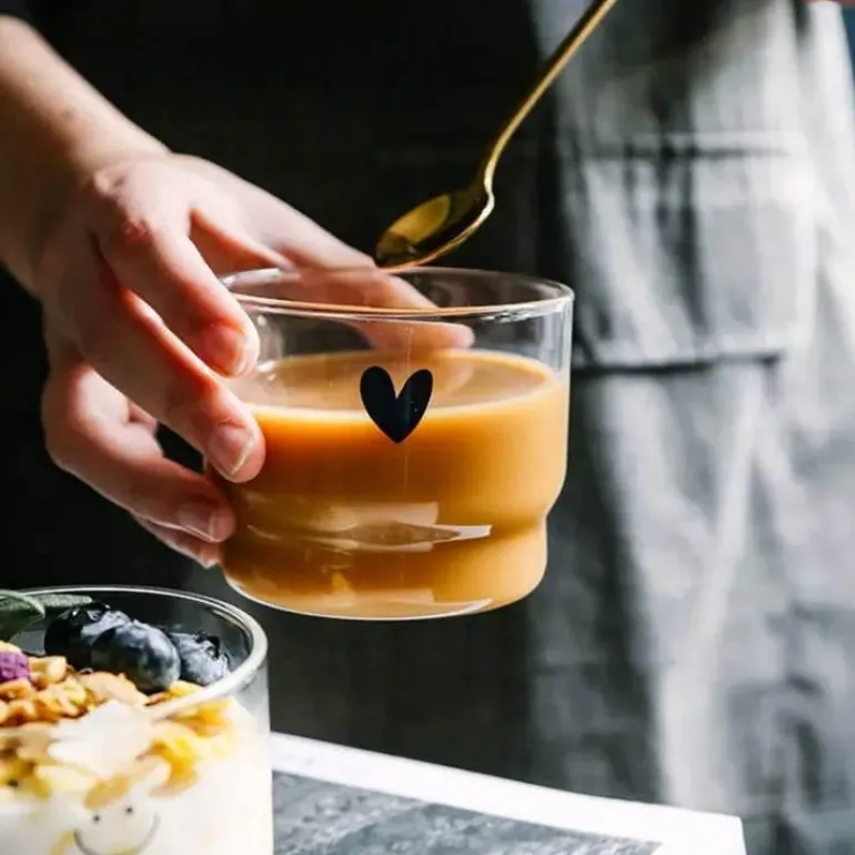 Wir präsentieren das Smiley Heart Glasbecher-Set mit 300 ml Fassungsvermögen – perfekt für Tee, Kaffee oder Milch. Diese eleganten Becher aus hochwertigem Borosilikatglas sind ideal für jeden Anlass zu Hause.