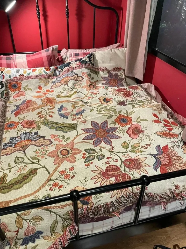 Verschönern Sie Ihr Outdoor-Erlebnis mit unserer floralen Outdoor-Sofadecke. Sie ist fachmännisch aus einer hochwertigen Polyester-Baumwollmischung gefertigt. Diese dekorative Decke eignet sich nicht nur perfekt für Picknicks und Wohnmobilausflüge, sondern eignet sich auch als elegante Tagesdecke für Ihr Zuhause.