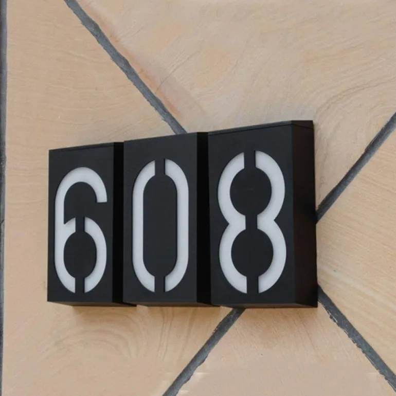 Beleuchten Sie die Außenfassade Ihres Hauses mit unseren solarbetriebenen LED-Hausnummern – einer umweltfreundlichen und funktionalen Hausnummernbeleuchtung. Diese solarbetriebenen Leuchten verbessern die Sichtbarkeit und sorgen dafür, dass Ihre Adresse auch nachts gut zu sehen ist. Das erhöht die Sicherheit und Zugänglichkeit.