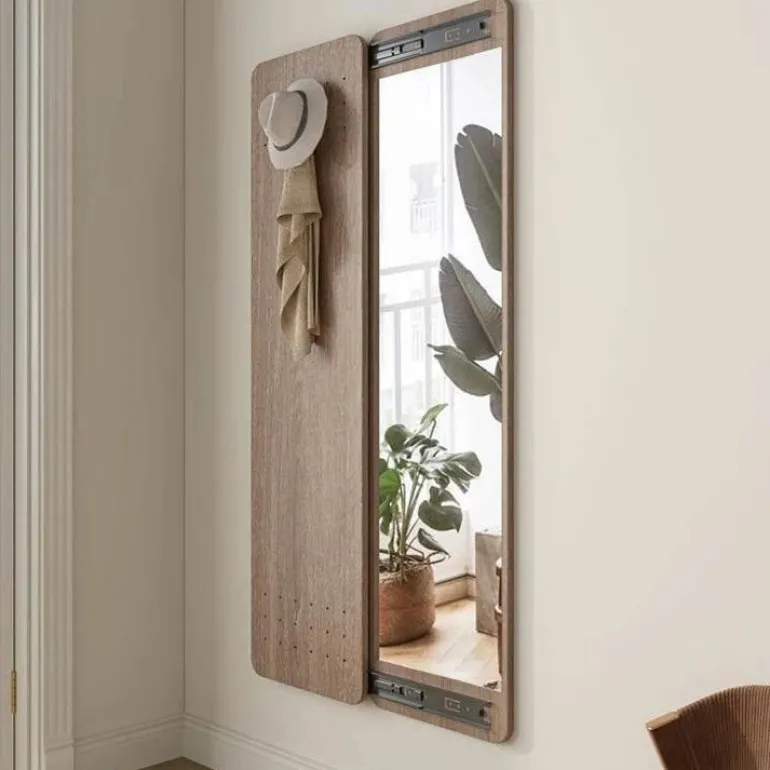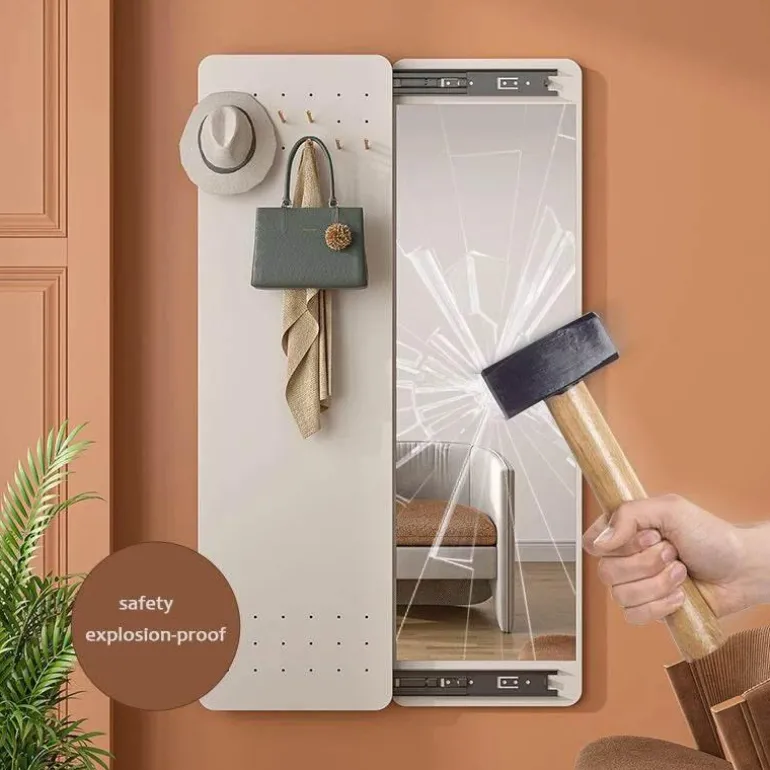 Transform your entryway with this multifunctional hallway mirror, thoughtfully designed for both reflection and organization. This sleek full-length mirror seamlessly incorporates hidden hooks, making it an ideal solution for small apartments and compact entryways.