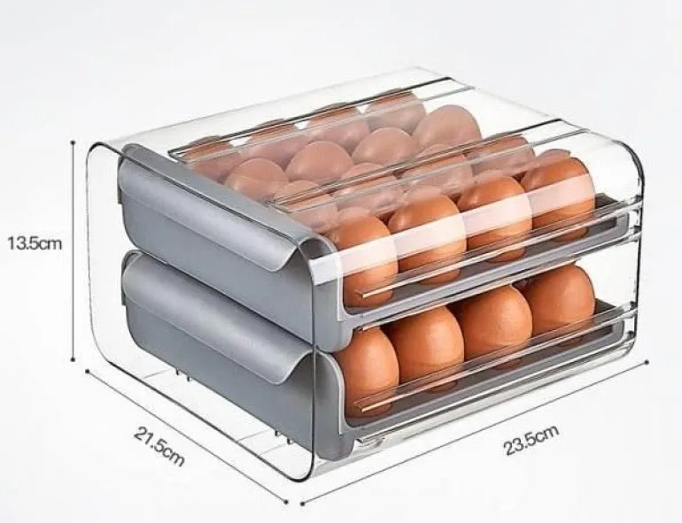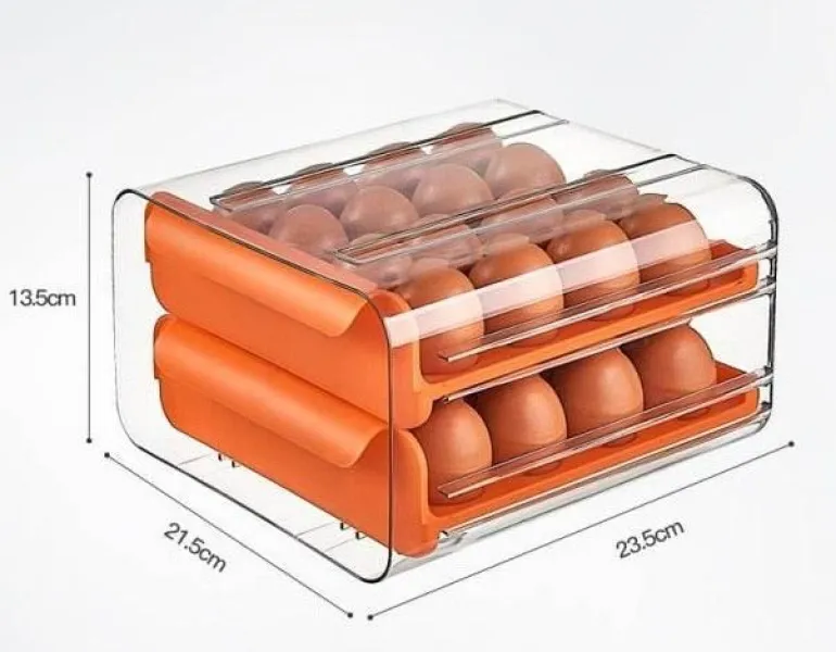 Entdecken Sie eine effiziente Lösung zur Eieraufbewahrung mit diesem doppellagigen, stapelbaren Organizer. Er bietet Platz für bis zu 32 Eier in 32 Einzelfächern. Diese Aufbewahrungsbox sorgt nicht nur für ordentliche Aufbewahrung Ihrer Eier, sondern hilft auch, den Platz in Ihrer Küche optimal zu nutzen.