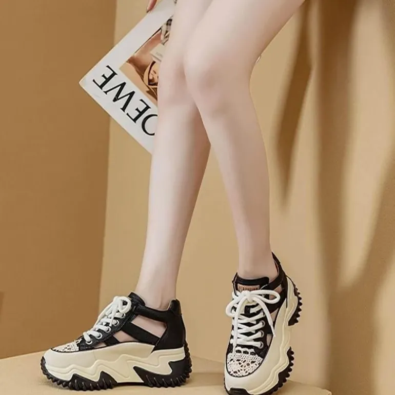 1 x stylische, atmungsaktive High-Top-Schuhe mit Hohlmuster.