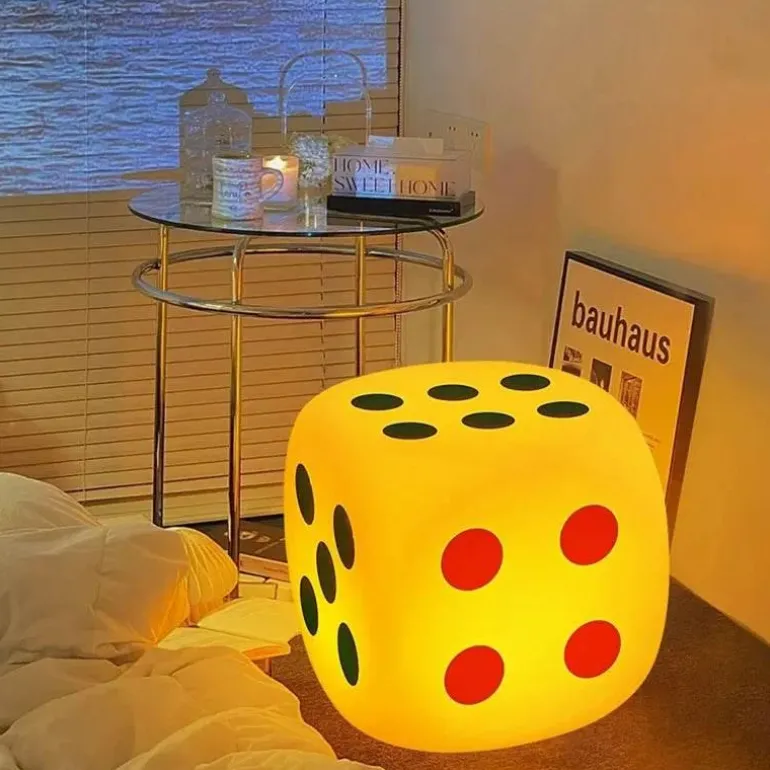 1 x Würfel-Steh- und Tischlampe mit Nachttischatmosphäre.