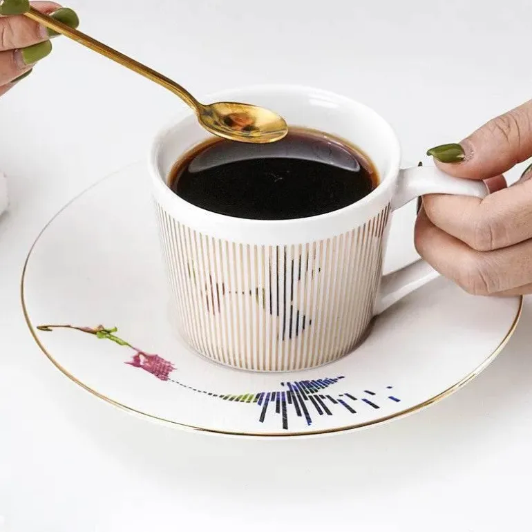 Das Set aus hochwertiger, langlebiger Keramik besteht aus einer perfekt aufeinander abgestimmten Tasse, einem Löffel und einer Untertasse und sorgt so für ein rundum stilvolles Trinkerlebnis. Die Tasse fasst großzügige 250 ml und ist somit ideal für Ihren Morgenkaffee und einen wohltuenden Abendtee.