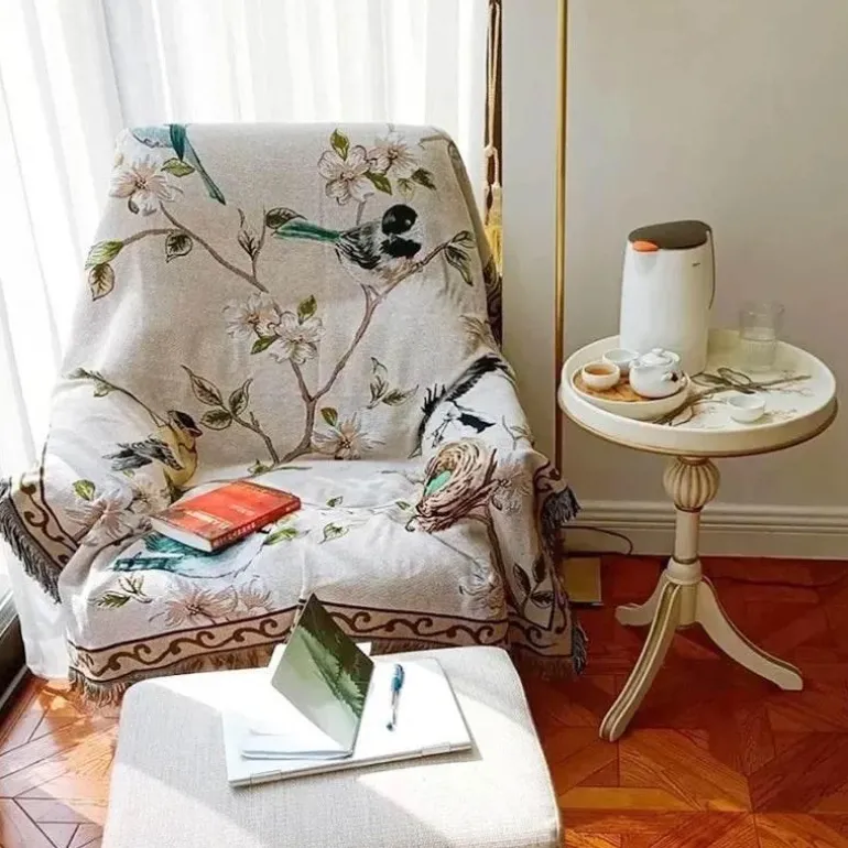 Erleben Sie die perfekte Kombination aus Stil und Komfort mit der gestrickten Sofadecke „Floral Bird“, einer modernen Decke, die jeden Wohnraum aufwertet. Diese luxuriöse Decke aus einer hochwertigen Polyester-Baumwoll-Mischung verleiht Ihrer Wohnkultur einen Hauch von Eleganz.