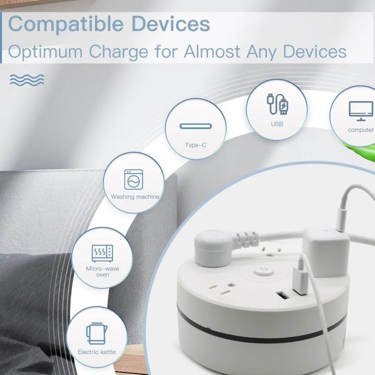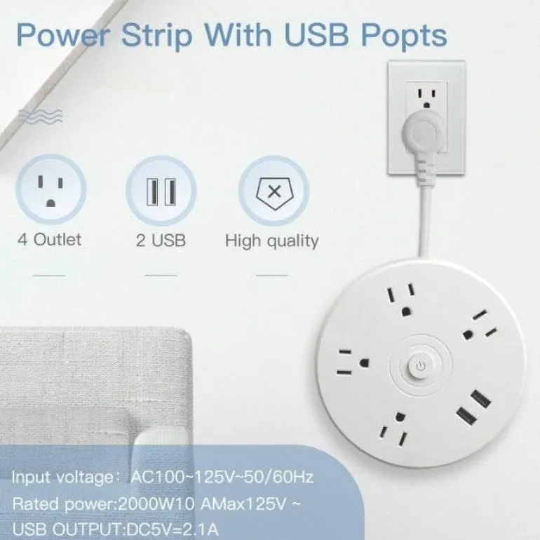 Mit einer leistungsstarken Ausgangsleistung von 2000 W und einer großzügigen Kabellänge von 1,8 Metern (70,8 Zoll) ermöglicht dieses Verlängerungskabel eine flexible Platzierung. Es verfügt über vier AC-Steckdosen mit einer Leistung von bis zu 2000 W sowie zwei USB-Anschlüsse mit 5 V bei 2,1 A – ideal zum schnellen Laden Ihrer Geräte. Der US-Standardstecker gewährleistet die Kompatibilität mit verschiedenen Steckdosen und macht es so zur praktischen Wahl für jede Umgebung.