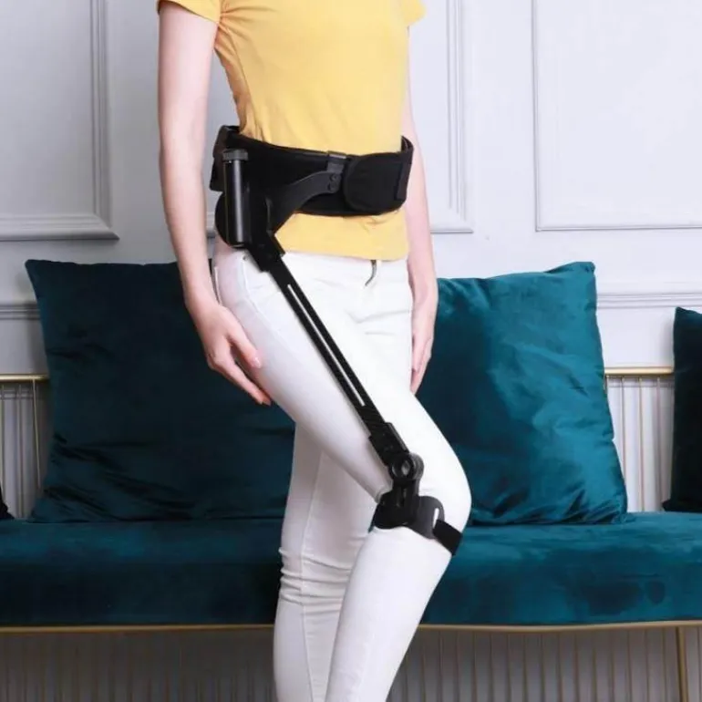 Der Gehstock ist benutzerfreundlich gestaltet und lässt sich bequem mit einer Hand tragen. Die Befestigung ist unkompliziert und erfordert nur zwei Riemen für einen festen Sitz. Für eine korrekte Ausrichtung achten Sie darauf, dass der Fixierungsgurt unter dem Knie 1–2 cm unterhalb der Kniescheibe positioniert ist, wobei die Knieeinheit nach vorne und senkrecht zum Boden zeigt.
