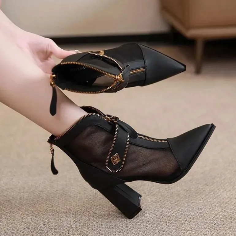 1x Heel Breeze Stylische Mesh-Stiefeletten für Damen.