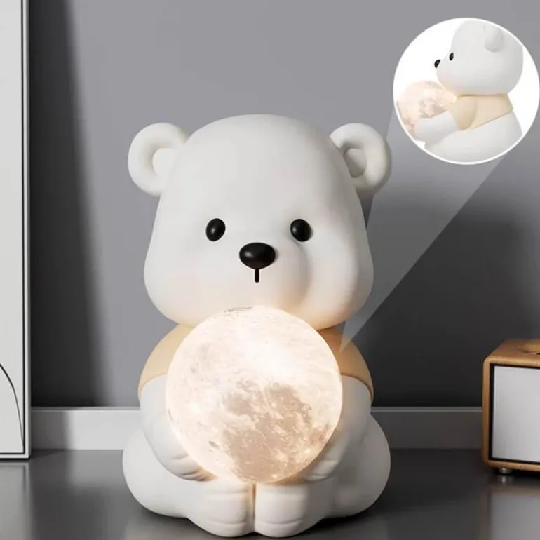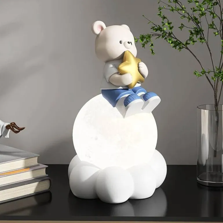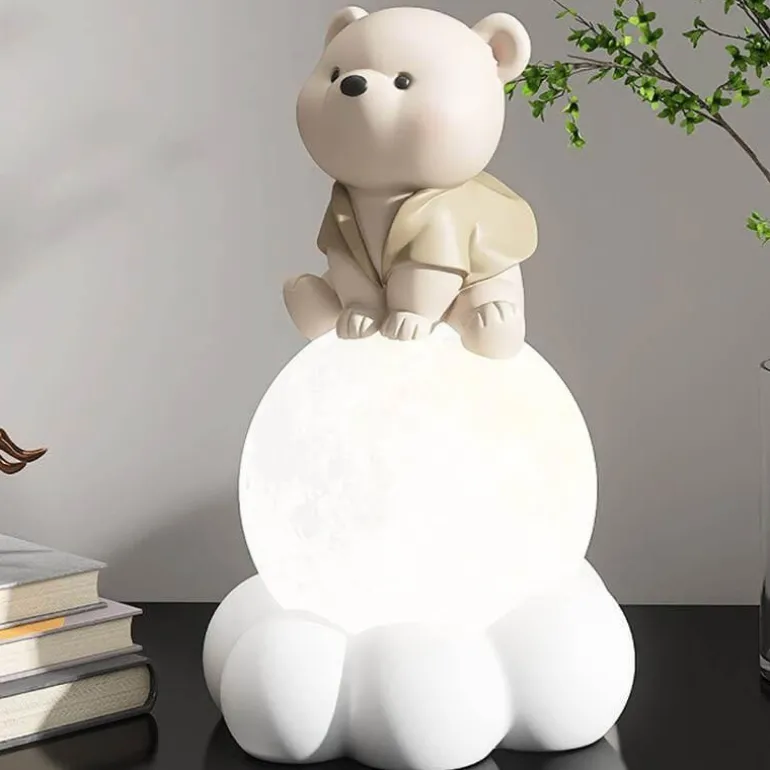 Verwandeln Sie das Kinderzimmer Ihres Kindes mit dem Goodbye Bear Nachtlicht, einer charmanten Nachttischlampe, die jedem Schlafzimmer eine verträumte Note verleiht. Dieses dekorative Accessoire dient sowohl als beruhigendes Nachtlicht als auch als schöne Ergänzung Ihrer Wohnkultur. Die Lampe aus robustem Harz besticht durch ihr einladendes weißes Finish, das mit vielen Designthemen harmoniert.