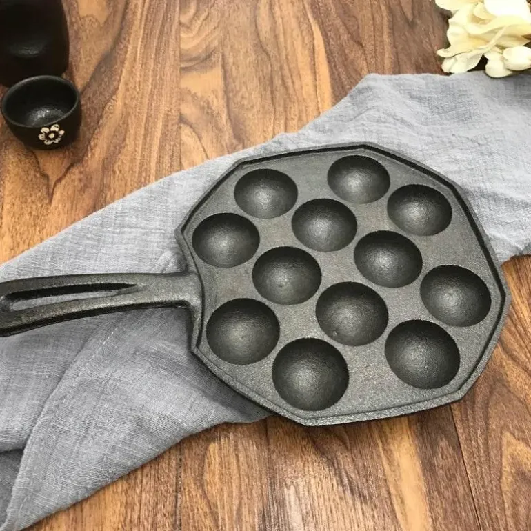 Entdecken Sie die Freude an der Zubereitung authentischer japanischer Oktopusbällchen zu Hause mit unserer robusten Takoyaki-Pfanne. Dieses unverzichtbare Küchenwerkzeug aus hochwertigem Gusseisen eignet sich sowohl für Anfänger als auch für erfahrene Köche.