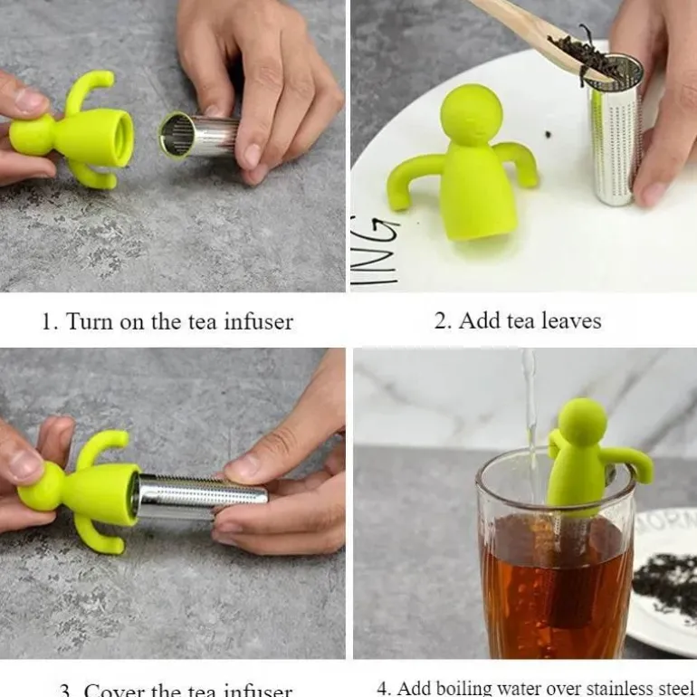 Verschönern Sie Ihr Tee-Ritual mit dem entspannenden Tee-Ei in Menschenform – einer reizvollen Kombination aus verspieltem Design und praktischer Funktionalität. Dieses innovative Tee-Ei in Form einer menschlichen Figur verleiht Ihrer Teezubereitung nicht nur Charme, sondern verbessert auch den Geschmack Ihrer Lieblings-Loseblatt-Tees. Hergestellt aus robustem 304 Edelstahl und flexiblem lebensmittelechtem Silikon filtert es die Teeblätter effektiv und sorgt für einen aromatischen Aufguss in jeder Tasse.