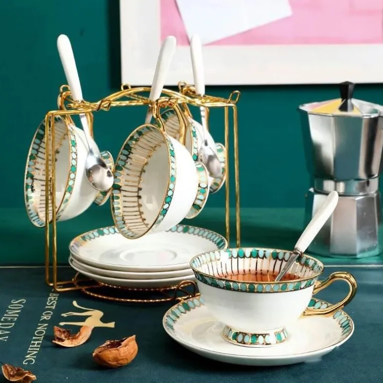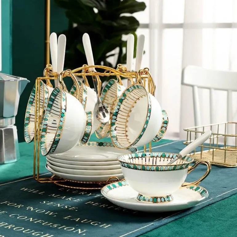 Dieses Kaffee- und Teeservice aus Bone China eignet sich hervorragend als Geschenk oder als charmante Ergänzung Ihrer Trinkgeschirrsammlung und verschönert jede Zusammenkunft. Genießen Sie die perfekte Kombination aus Funktionalität und zeitloser Eleganz bei jedem Gebrauch.