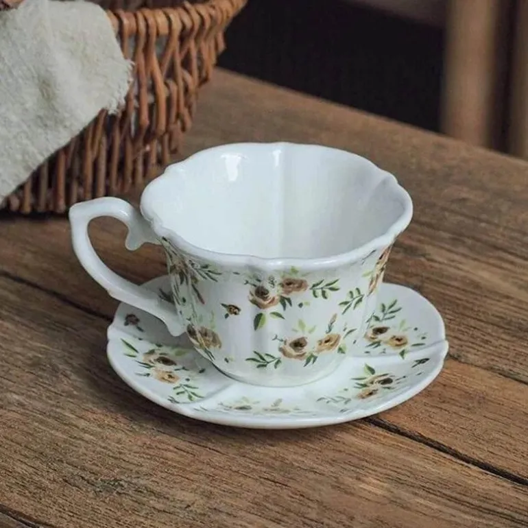Veredeln Sie Ihr Teeerlebnis mit unserem wunderschön gefertigten Porzellan-Blumen-Teetassen-Set aus hochwertigem Bone China. Jede Tasse und Untertasse präsentiert ein aufwendiges Blumenmuster und verleiht Ihrer Teestunde einen Hauch von Eleganz und Charme.