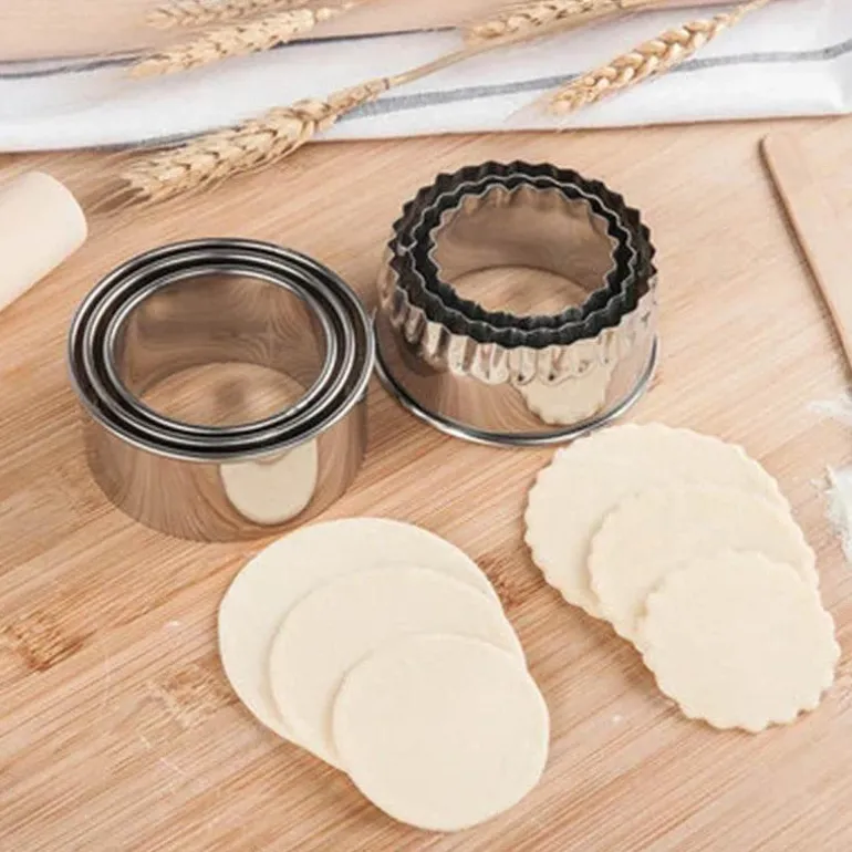 Erleben Sie die praktische Handhabung unseres unverzichtbaren Teigtaschen-Ausstecher-Sets aus Edelstahl, mit dem Sie mühelos perfekt geformte Teigtaschen herstellen können. Dieses hochwertige, dreiteilige Set enthält robuste Teigschneider aus Edelstahl, die die Teigtaschenherstellung vereinfachen und für stets gleichbleibend leckere Ergebnisse sorgen.