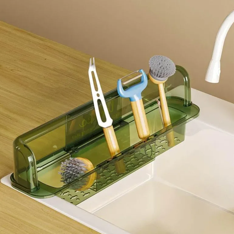 Mit einer Länge von 55,5 cm, einer Breite von 13,5 cm und einer Höhe von 10 cm bietet das Gestell großzügig Platz für Spülmittel, Schwämme und andere wichtige Reinigungsutensilien. Dieses durchdachte Design sorgt für Ordnung auf Ihrer Arbeitsplatte und stellt sicher, dass alles, was Sie brauchen, leicht zugänglich ist.