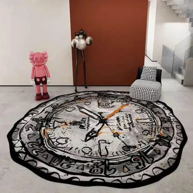 Verschönern Sie Ihre Inneneinrichtung mit dem Rolex-inspirierten Zifferblatt-Teppich, einer dekorativen Matte, die Eleganz verkörpert. Dieser sorgfältig gefertigte Teppich präsentiert eine authentische Nachbildung eines klassischen Rolex-Zifferblattdesigns.