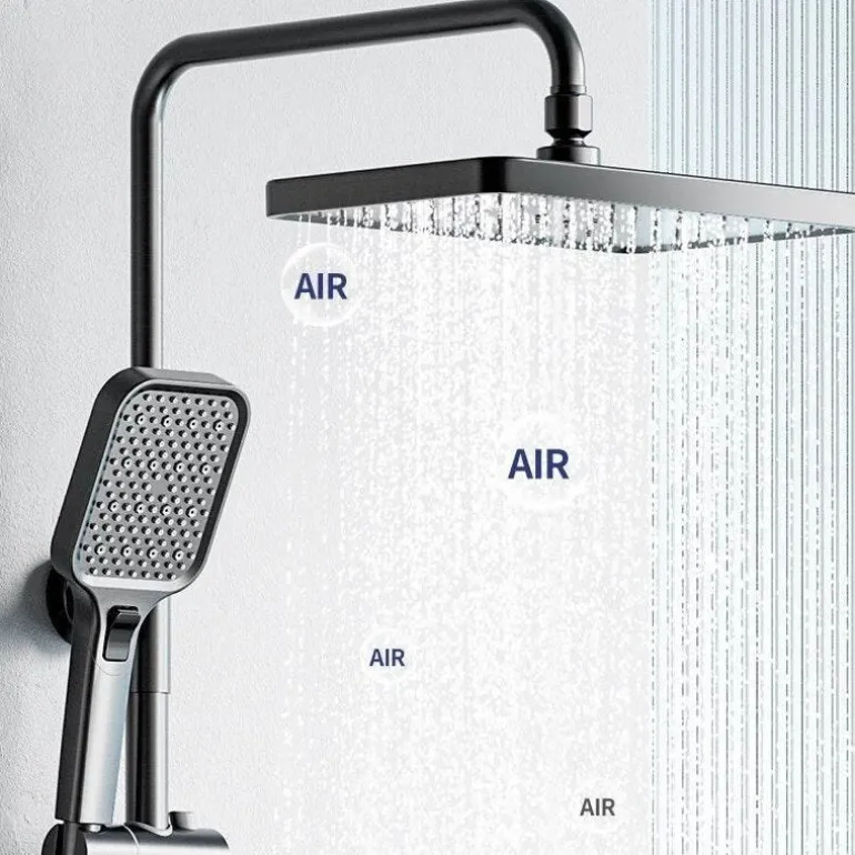 Der große Regenduschkopf sorgt für wohltuendes Duschvergnügen, während die vielseitige Handbrause das Abduschen nach dem Training oder das Baden Ihrer Haustiere mühelos macht. Dieses aus hochwertigen Materialien gefertigte System verbessert nicht nur Ihr Duscherlebnis, sondern verleiht Ihrem Badezimmer auch einen Hauch moderner Eleganz.