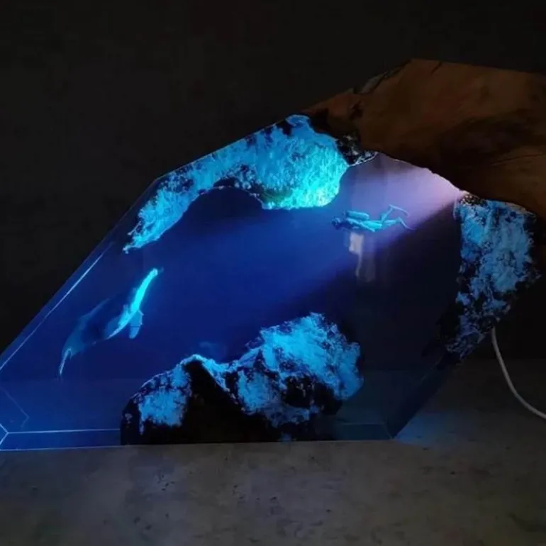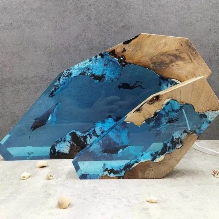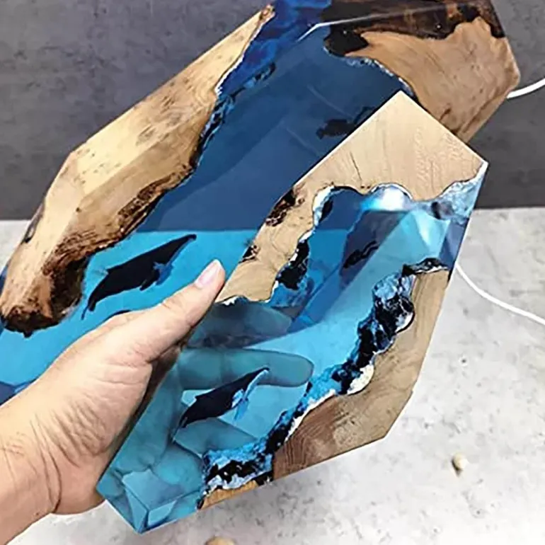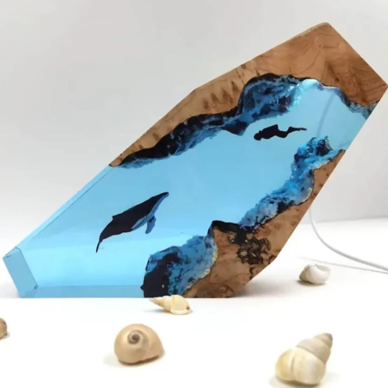 Funktionalität trifft auf Kunstfertigkeit in dieser Epoxidharzlampe, die mit energieeffizienten LED-Birnen kompatibel ist, die eine beeindruckende Lebensdauer von etwa 25.000 Stunden bieten und so für viele Jahre eine dauerhafte und zuverlässige Beleuchtung gewährleisten.
