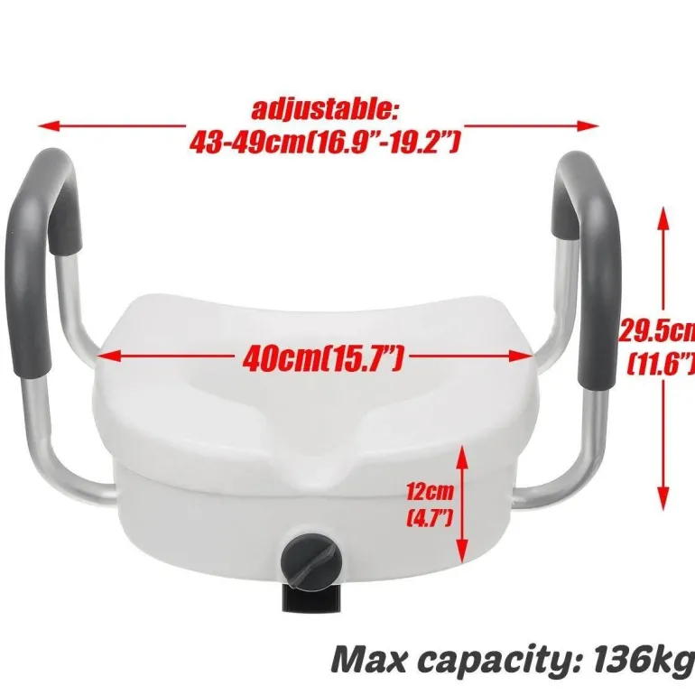Verbessern Sie Ihr Badezimmererlebnis mit diesem Toilettensitzlifter. Er erhöht die Höhe Ihrer Toilette und sorgt so für mehr Komfort und Zugänglichkeit. Dieses unverzichtbare medizinische Hilfsmittel ist ideal für Senioren, Schwangere und Personen mit eingeschränkter Mobilität und bietet die nötige Unterstützung für einen sicheren und bequemen Toilettengang.