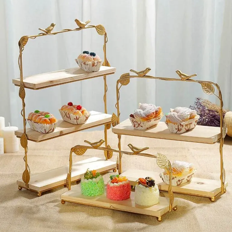 Präsentieren Sie einen wunderschön gefertigten Dessertständer mit harmonischem Goldvogel- und Blattdesign, der jeder Hochzeit oder jedem besonderen Anlass Eleganz verleiht. Mit seiner naturinspirierten Ästhetik und dem eleganten Goldfinish wertet dieser dekorative Tortenständer nicht nur Ihre Tischdekoration auf, sondern dient auch als markantes Herzstück, das alle Blicke auf sich zieht.