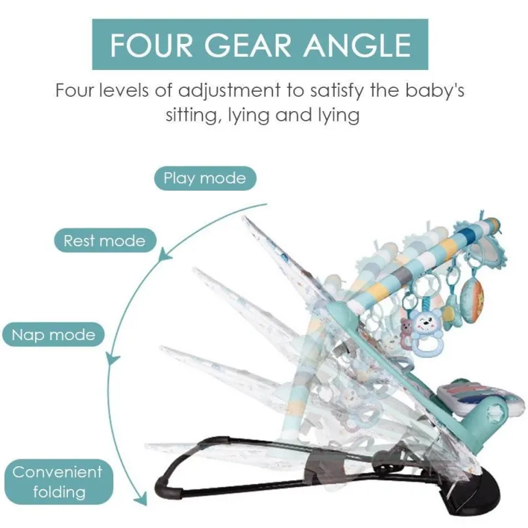 Die Wippe ist für ein Gewicht von 12,5 kg ausgelegt und verfügt über vier Höheneinstellungen, um einen bequemen Sitz zu gewährleisten, während Ihr Kind wächst.