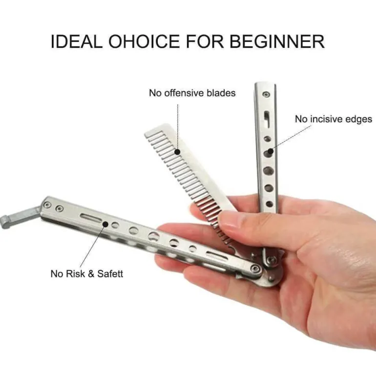 Entdecken Sie die praktische und funktionale Faltbürste aus Edelstahl – ein unverzichtbares Reise-Haarpflegetool für Anfänger und Fortgeschrittene. Dieser innovative Schmetterlingskamm hilft Ihnen, Ihre Haarstyling-Fähigkeiten sicher zu üben und ohne Schnitt- oder Prellungsgefahr zu simulieren. Ohne scharfe Kanten oder spitze Klingen ist er benutzerfreundlich.
