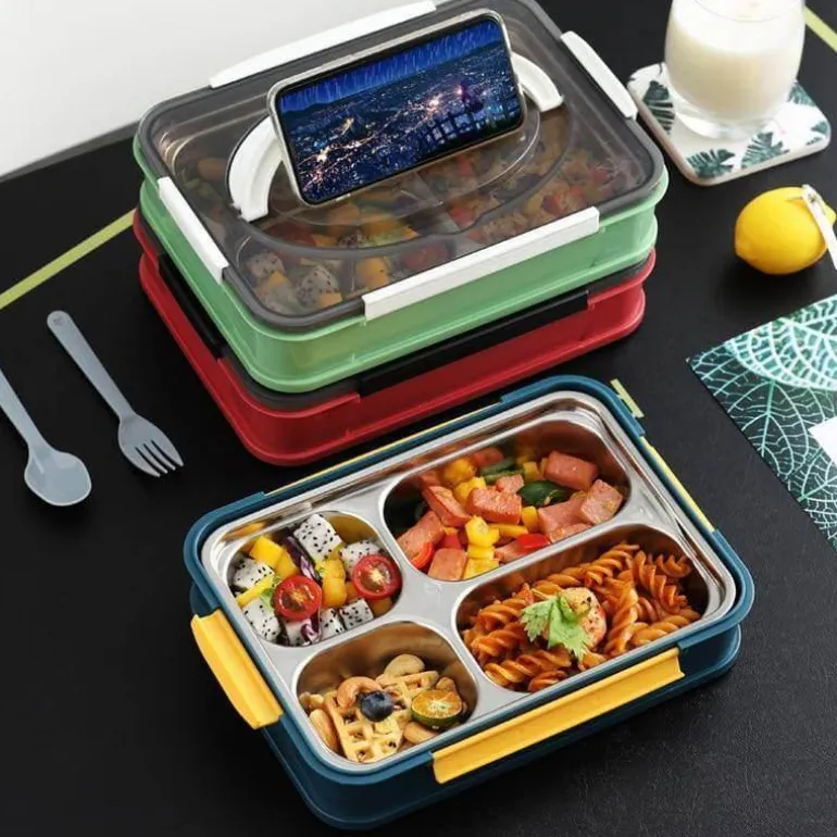 Diese tragbare Lunchbox erfüllt Ihre Bedürfnisse, egal ob bei der Arbeit oder bei Outdoor-Abenteuern. Genießen Sie Ihre Mahlzeiten beruhigt, denn in diesem durchdachten Behälter sind sie sicher und gut aufbewahrt.