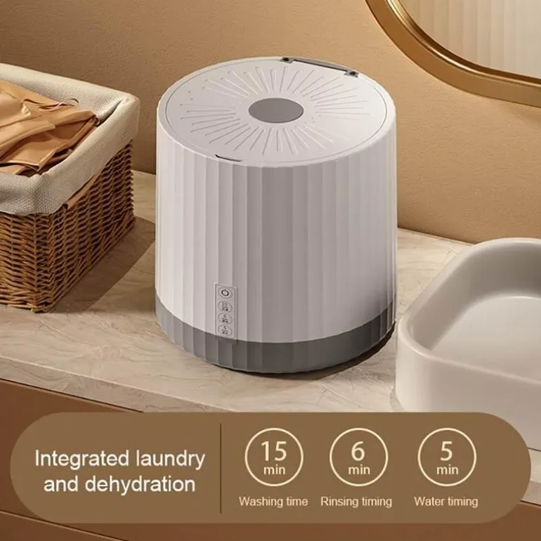 Erleben Sie die Leichtigkeit und Effizienz der tragbaren 4-Liter-Mini-Waschmaschine mit rotierender Turbine – die ideale kompakte Lösung für kleine Wäschemengen. Dank ihres einzigartigen rotierenden Turbinenmechanismus reinigt diese Waschmaschine Ihre wichtigsten Wäschestücke wie Socken, Unterwäsche und T-Shirts gründlich und effektiv – und das alles mit einem Fassungsvermögen von 4 Litern.